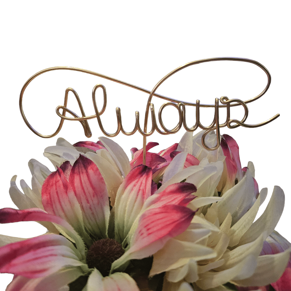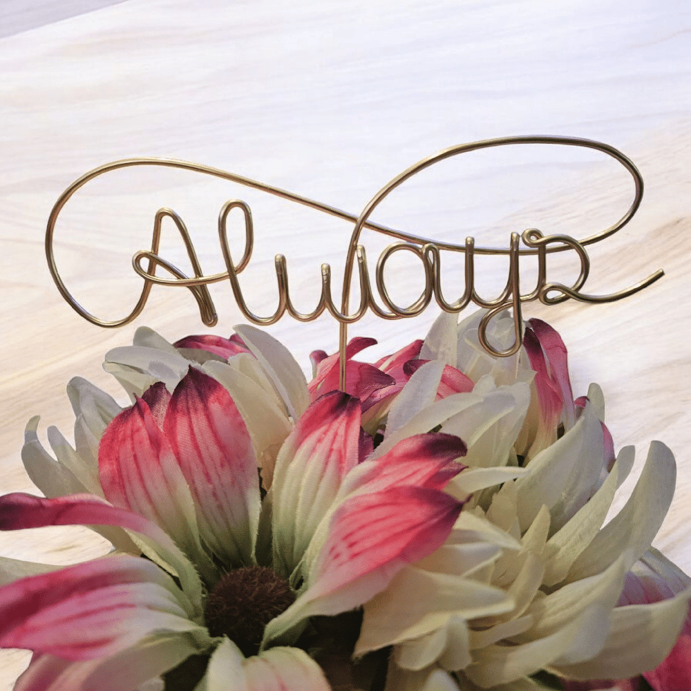Add a timeless, romantic touch to your wedding cake with our handcrafted Always Infinity Cake Topper. Designed with elegance and simplicity in mind, the infinity symbol is set behind the word "Always", making it the perfect symbol of everlasting love and togetherness.