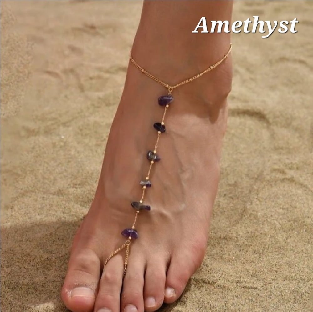 Step into effortless boho-chic with these barefoot anklet chain sandals. Designed to wrap elegantly around your foot and ankle, they combine the look of delicate jewelry with the comfort of a minimalist sandal. Perfect for beach days, poolside lounging, summer festivals, or casual summer outfits, these anklet chains add a touch of sparkle and sophistication to every step. A stylish accessory that combines the charm of jewelry with the freedom of barefoot sandals.