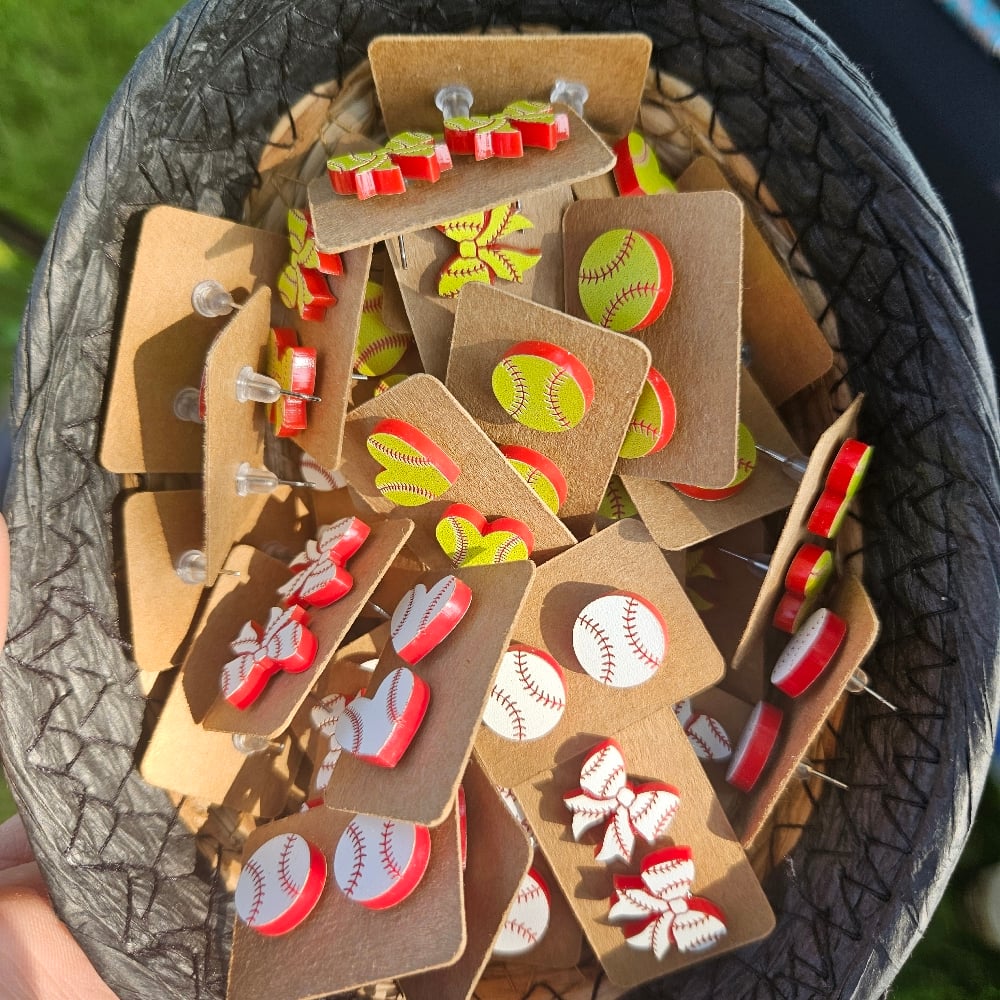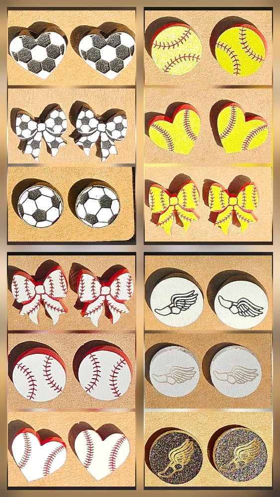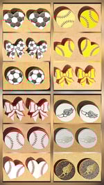 Show off your support for your favorite game with these Sport Ball themed stud earrings. Each style is available in the shape of the ball, a heart, or bow. These are designed for comfort and all day everyday wear. The studs are hypoallergenic, making them perfect for sensitive ears. Studs are about the size of a dime, perfect for smaller children.